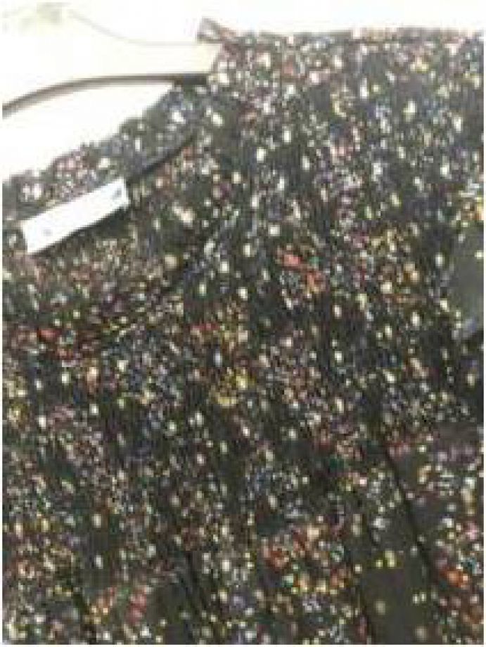 | RETAILER | N/A | TRIM COMPOSITION | TRIM FABRICATION | TRIM COLOR | FABRICATION | POLY | FABRIC CODE | FABRIC COLOR | FABRIC WEIGHT | FABRIC COMPOSITION | POLY GGT PRINTED WHIT LUREX | TRIM WHEIGHT |