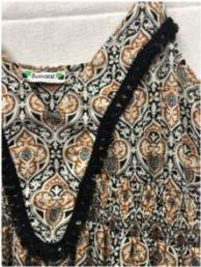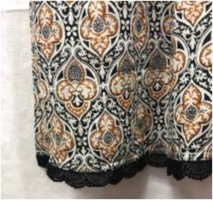 | RETAILER | N/A | TRIM COMPOSITION | TRIM FABRICATION | TRIM COLOR | FABRICATION | POLY CHIFFON | FABRIC CODE | FABRIC COLOR | FABRIC WEIGHT | FABRIC COMPOSITION | POLY CHIFFON PRINTED SWISS DOT | TRIM WHEIGHT |